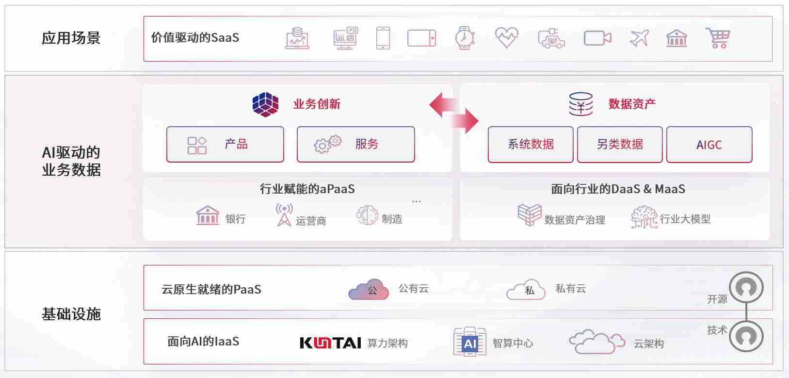 数字时代,,,,围绕企业数字化转型的关键要素,,,,尊龙数码开创性的提出数云融合战略和技术体系框架,,,,着力在云原生、、数字原生、、AI原生和信创产业上架构产品和服务能力,,为处在不同数字化转型阶段的快消零售、、、、汽车、、金融、、、医疗、、、、政企、、、、教育、、运营商等行业客户提供泛在的敏捷IT能力和融合的数据驱动能力,,,构建跨界融合创新的数字业务场景和新业务模式,,助力企业级客户建立面向未来的核心能力和竞争优势,,,全面推动社会的数字化、、智能化转型升级。。。